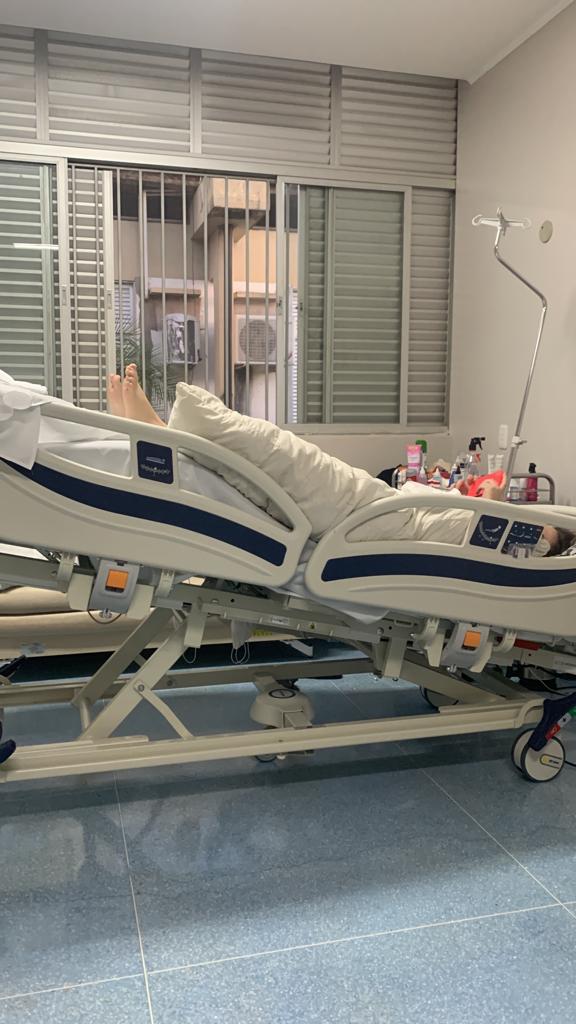 Após o procedimento, iniciava um processo delicado e incerto de repouso e cuidado. Paola foi encaminhada para o quarto, sem saber quando deveria receber alta. No início, ela até pôde sentar na cama e ir ao banheiro, em cadeira de rodas. Porém, logo foi identificado a diminuição do colo, o que levou a deixá-la em repouso absoluto, deitada e com as pernas elevadas.