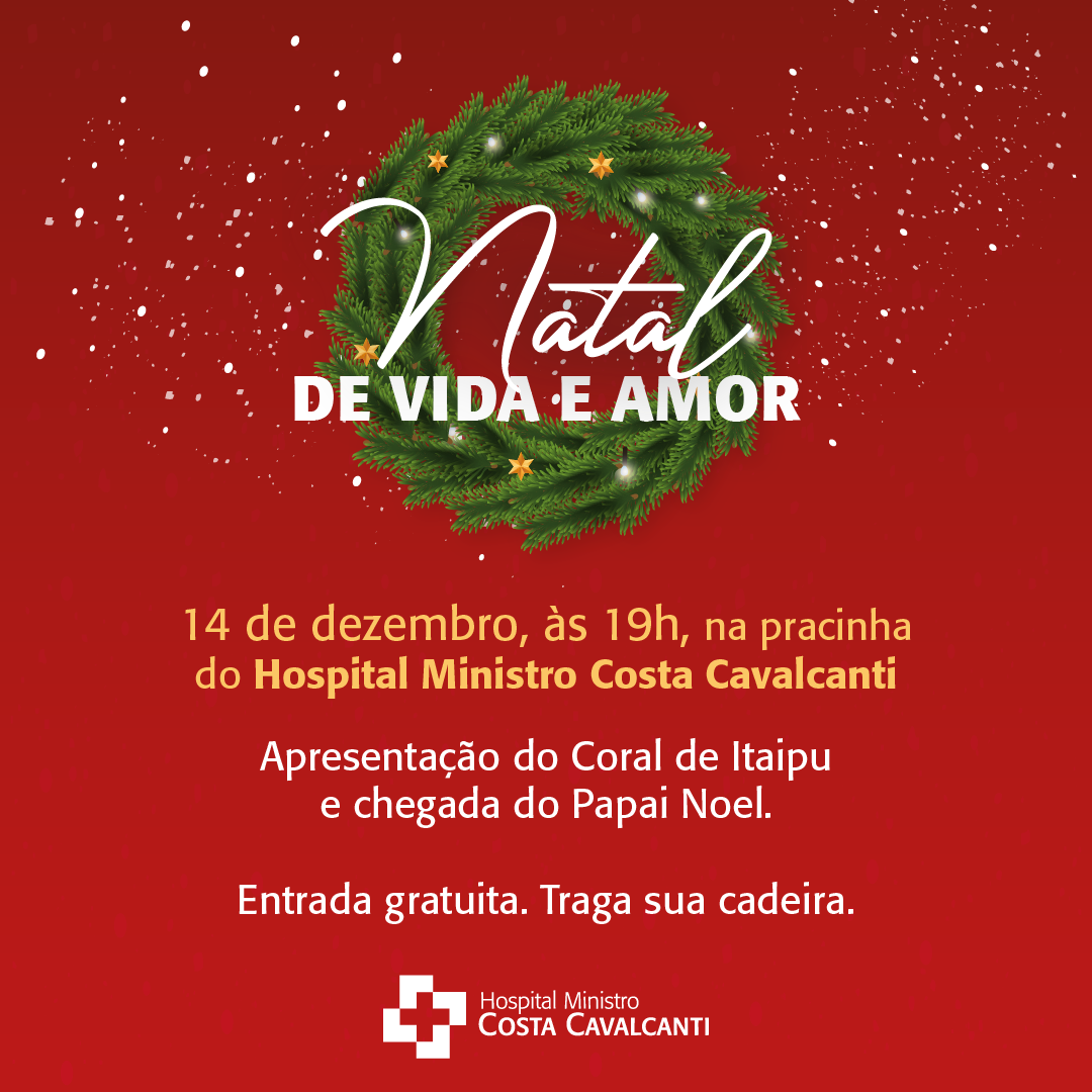 Chegou o dia da 2ª edição do Natal de Vida e Amor do Hospital Ministro Costa Cavalcanti (HMCC). A partir das 19h, a apresentação do Coral de Itaipu e a chegada do Papai Noel prometem emocionar a todos. O evento acontece na pracinha do HMCC e é gratuito. “Venham participar […]