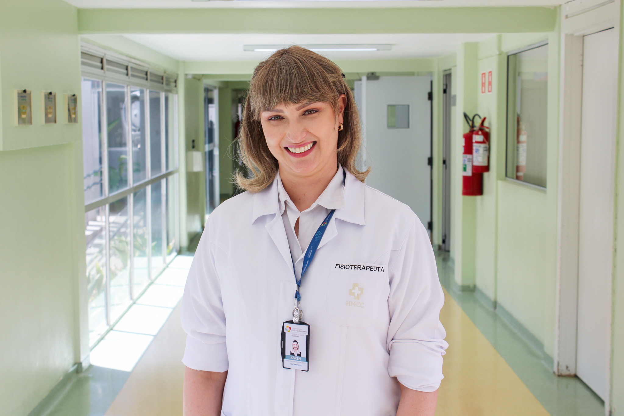Dos 1.174 colaboradores da instituição atualmente, 905 são mulheres. Karen Mentz, gerente da Fisioterapia, destaca a referência do HMCC.