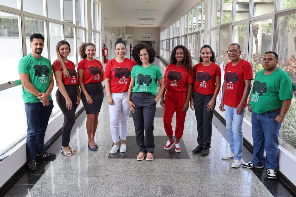 “Eu amo a minha cor, gosto dos meus traços, adoro meu cabelo e como as pessoas reconhecem isso”, afirma a técnica de enfermagem Denisia Carla Martins da Cruz, colaboradora há 12 anos no Hospital Ministro Costa Cavalcanti (HMCC). Ao lado de colegas, ela levantou um movimento na instituição para celebrar o Dia da Consciência Negra, neste dia 20 de novembro. Alguns dos profissionais se reuniram com uma camiseta temática para uma foto na segunda-feira, dia 18, que será publica nas redes sociais.