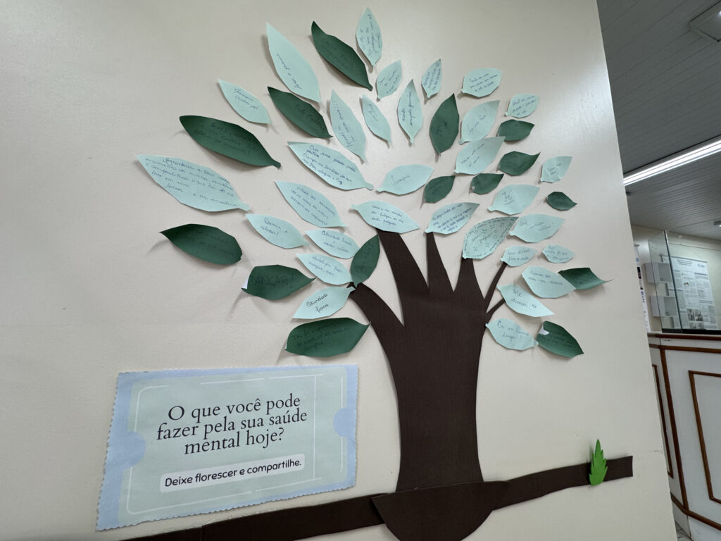 Semelhantes às caixinhas nas áreas, no setor de Recursos Humanos uma “árvore” convida a todos a florescerem uma dica de autocuidado. Já ao longo de todo mês de janeiro, diversas palestras estão acontecendo para discutir o tema, dar dicas do que fazer para cuidar da mente, técnicas de relaxamento e felicidade no trabalho.