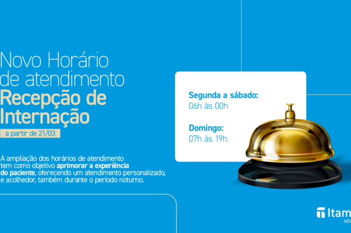 Prezados, Informamos que a partir desta sexta-feira, dia 21 de março, o horário de atendimento da Recepção de Internação será das 06h à meia noite, de segunda a sábado, e aos domingos das 07h às 19h. A extensão dos horários de atendimento visa melhorar a experiência do paciente proporcionando um […]