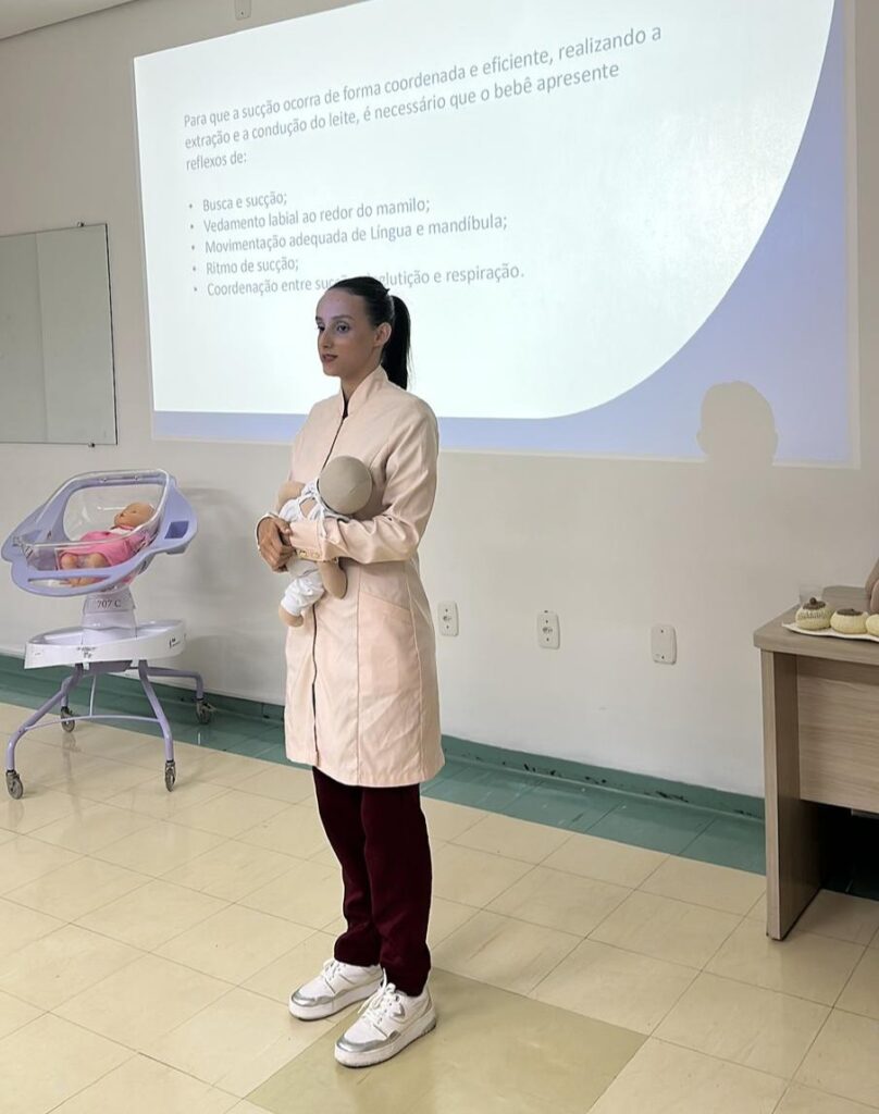 A programação foi conduzida por uma equipe multiprofissional composta por enfermeiros das áreas materno-infantis, pediatra, obstetra, anestesista, farmacêutico, psicólogo, assistente social, fonoaudiólogo, nutricionista e fisioterapeuta. A atuação integrada garantiu um acompanhamento completo e humanizado, contemplando diferentes aspectos da gestação e do cuidado com o bebê.